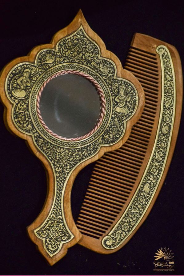 قلمزنی برنج جنس شانه از و آینه از چوب